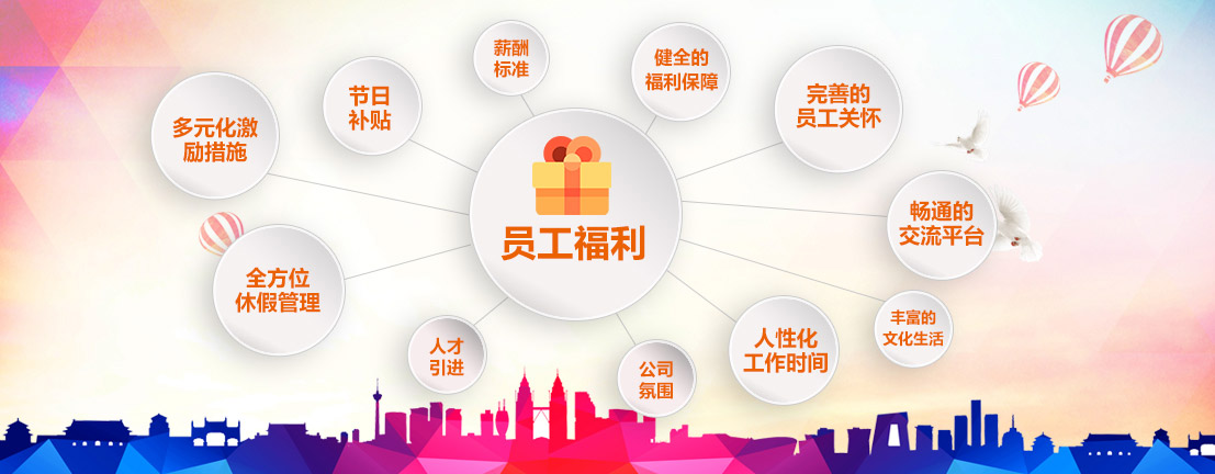 ?愛心基金、人才公寓、安居住房補貼、福利宿舍、結婚/生子禮金、結婚紀念日賀禮、高溫/通訊/交通/工作餐補助、慰問金、生日PATTY、體檢、心理健康關懷、員工家庭(父母、配偶、子女)關懷等