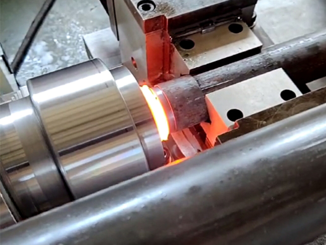 1.摩擦生熱·待焊的兩根鋼管(工件)分別夾持在設備的旋轉夾具和移動夾具上?!ばD端高速旋轉,移動端以一定壓力向旋轉端移動,使接觸面劇烈摩擦,機械能轉化為熱能,溫度迅速升高至材料的塑性狀態(接近熔點但未熔化)。